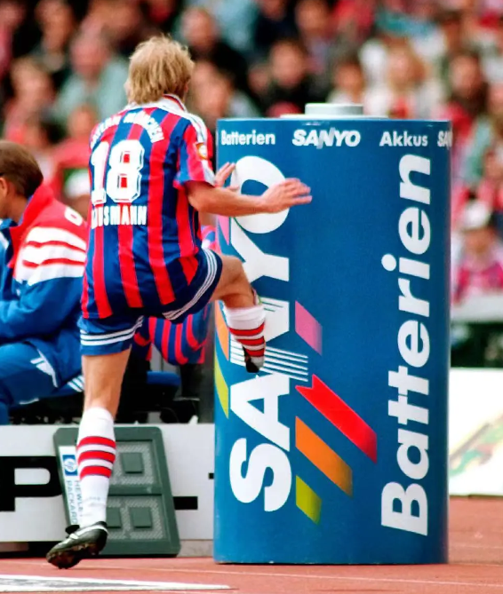克林斯曼当年一脚踢破广告桶成就了传奇